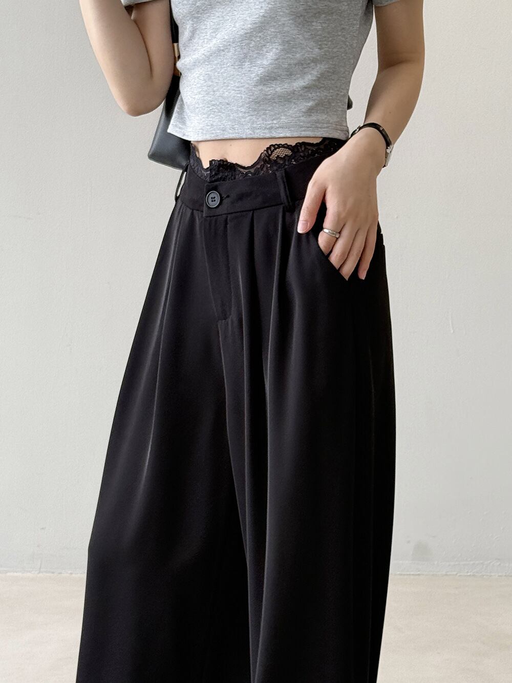 レディースロングパンツ レース ハイウエスト