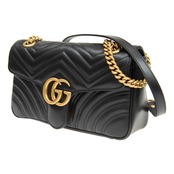 グッチ GGマーモント スモール チェーンショルダー。上質レザーとダブルGロゴがエレガント。チェーンストラップで肩掛けに。お出かけにぴったり。