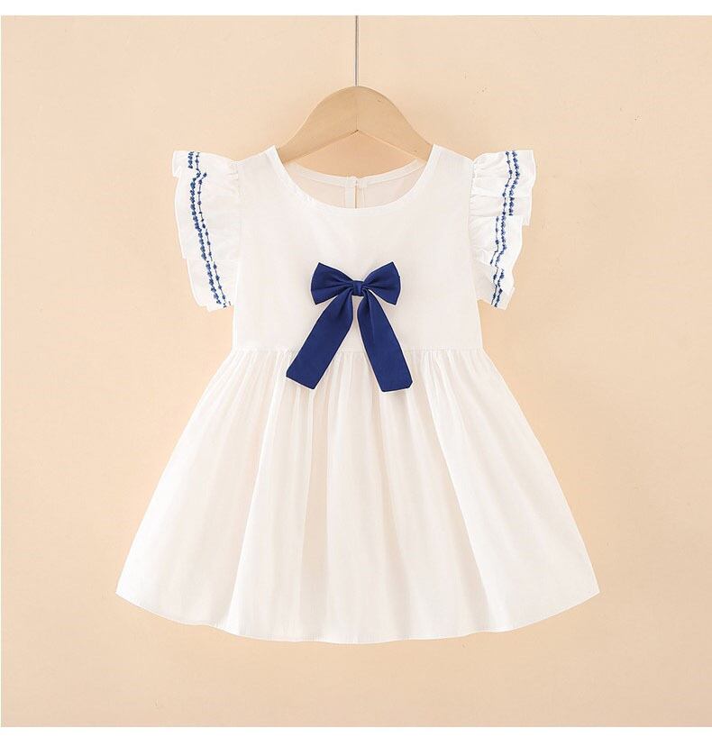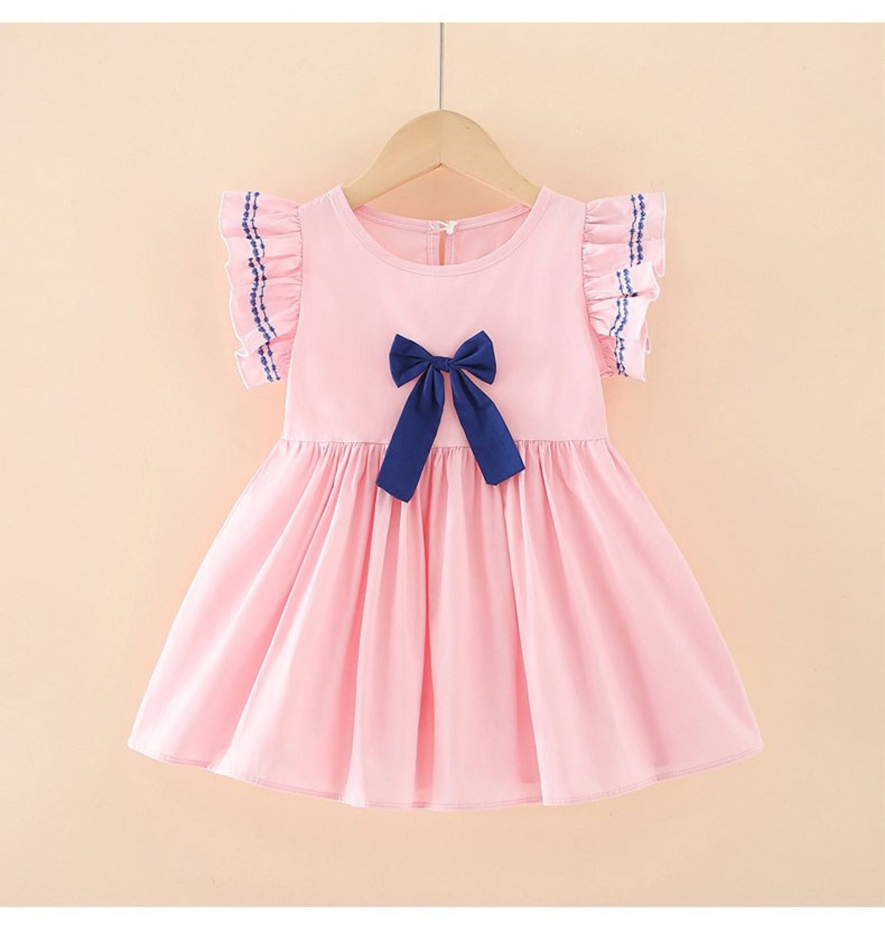 1.可愛いデザイン 肩フリルとリボンがアクセントとなり、女の子らしさを引き立てるキュートなワンピース。春夏の特別な日にぴったり!