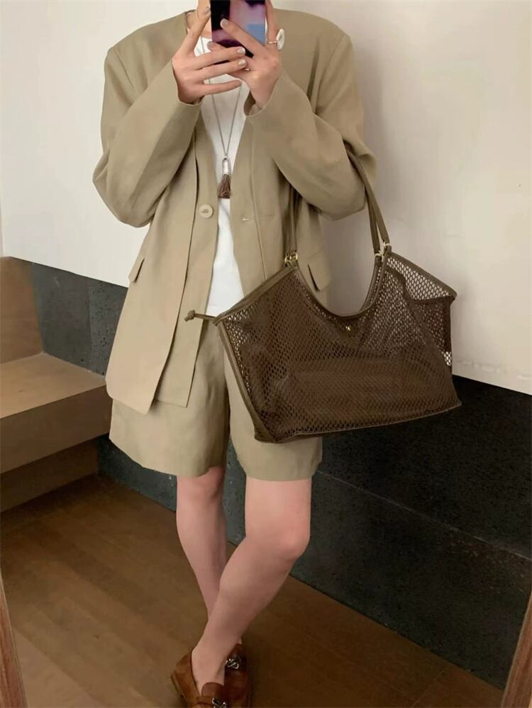 カジュアルトレンド編み空きデザイン大容量ショルダーバッグ